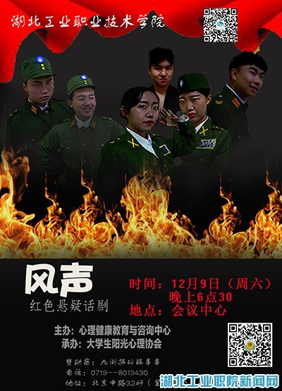 为进一步丰富我院校园文化生活,引导全院广大青年学生学习党史,学习革命英烈事迹,我院大学生阳光心理协会经过前期精心排练、汇演、试演,现将举办本学期最后一场大型话剧公演,欢迎广大师生届时前来观看。