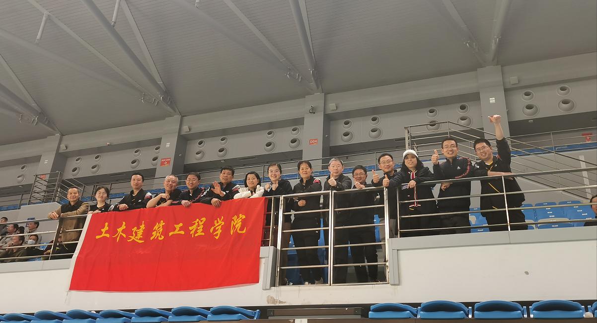 此次活动也得到了全院教职工的热心关注,伴随着一记记精彩的扣杀、劈杀或是巧妙的高远球、吊球,赛场边观战的拉拉队时不时爆发出一阵阵叫好声,赛场内外热情洋溢。场上比赛的队员奋勇拼搏,场下观战的观众鼓掌喝彩,忙着记分的裁判们兢兢业业,群“雄”毕至,少长咸集。