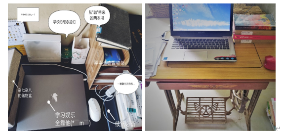 家里边没有特别置办过学习桌,一台废置已久的缝纫机便被我当作电脑桌用了。据我阿爷说,缝纫机购买到家近四十年,当时家家户户都有,用来制作新衣或缝补旧衣,而且还供我的两位姑姑学过裁缝。后来,年久失修,这台机器便被搁置起来。虽然桌面较小,但足够放置一台笔记本,还可以摆上几本书,而且高度合适,简单灵巧,看起来很有书桌的样子。双脚踏在脚踏板上,双手书写论文,一面感受着年代变迁,一边思索学术。