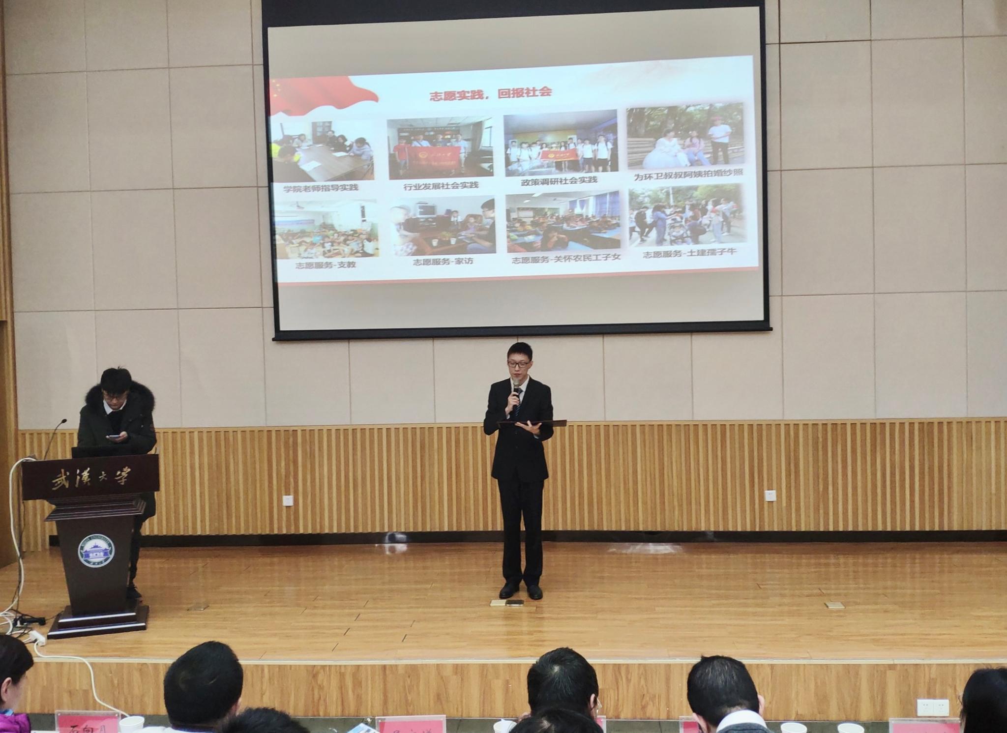 2016级土木工程卓越班通过“班级风貌展示+情景剧表演”的方式,向观众展示了班级同学成绩优秀,乐于钻研,心怀梦想,团结共进的风采。在班级风貌展示环节,班级团支书王鹏同学沉稳大气、条分缕析地向评委介绍了卓越班的整体面貌:班级同学精益求精,追求卓越,同心合力,全面发展。班级同学入党申请书提交率100%,社会实践参与率100%,科研项目参与率100%,课程及格率100%,这4个“100%”牢牢吸引了评委们的眼球。此外,班级人均获奖学金1.2项,班级硕士推免及出国率80%,获全国大学生BIM大赛一等奖等省部级以上奖项20余项,为环卫工人拍摄的“最美婚纱照”让更多的人分享了志愿服务的感动。在表演环节,四位同学为观众献上了一部风趣幽默的情景剧,讲述了在学院大学生党建网格工程的帮助下,郝蔡同学从“小菜”蜕变成为“小好”的过程。通过网格成员之间的学习互助、生活互助、成长互助,郝蔡同学实现了从害怕考试到均分85+,从“死肥宅”到运动会长跑前三,从不敢参加科研到成功申请专利的华丽转变,充分展现了同学们在班级建设中积极进取、踏实奋斗、团结互助的精神。短短五分钟的展示博得了观众的阵阵喝彩,2016级土木工程卓越班最终以第一名的好成绩荣获“先进班集体标兵”荣誉称号。