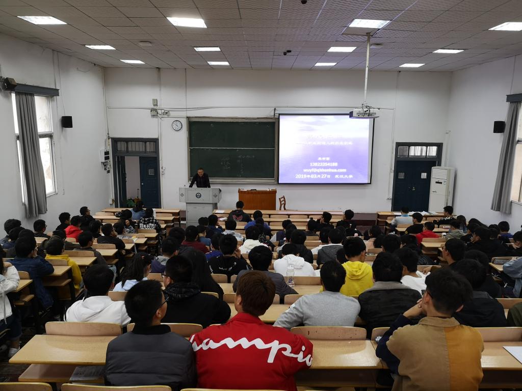 讲座正式开始前,吴有富董事长向同学们播放了短片《尉迟恭打铁记》,短片既诙谐幽默,又发人深省,深深地激发起同学们对接下来讲座内容的热情。讲座一开始,吴董事长自豪地向同学们介绍了中国土木行业走在了世界前列的现状,同时也指出土木行业存在的不足和需要改进之处,校友利用生动的事例勉励同学们做技术、品质过硬的高质量人才。