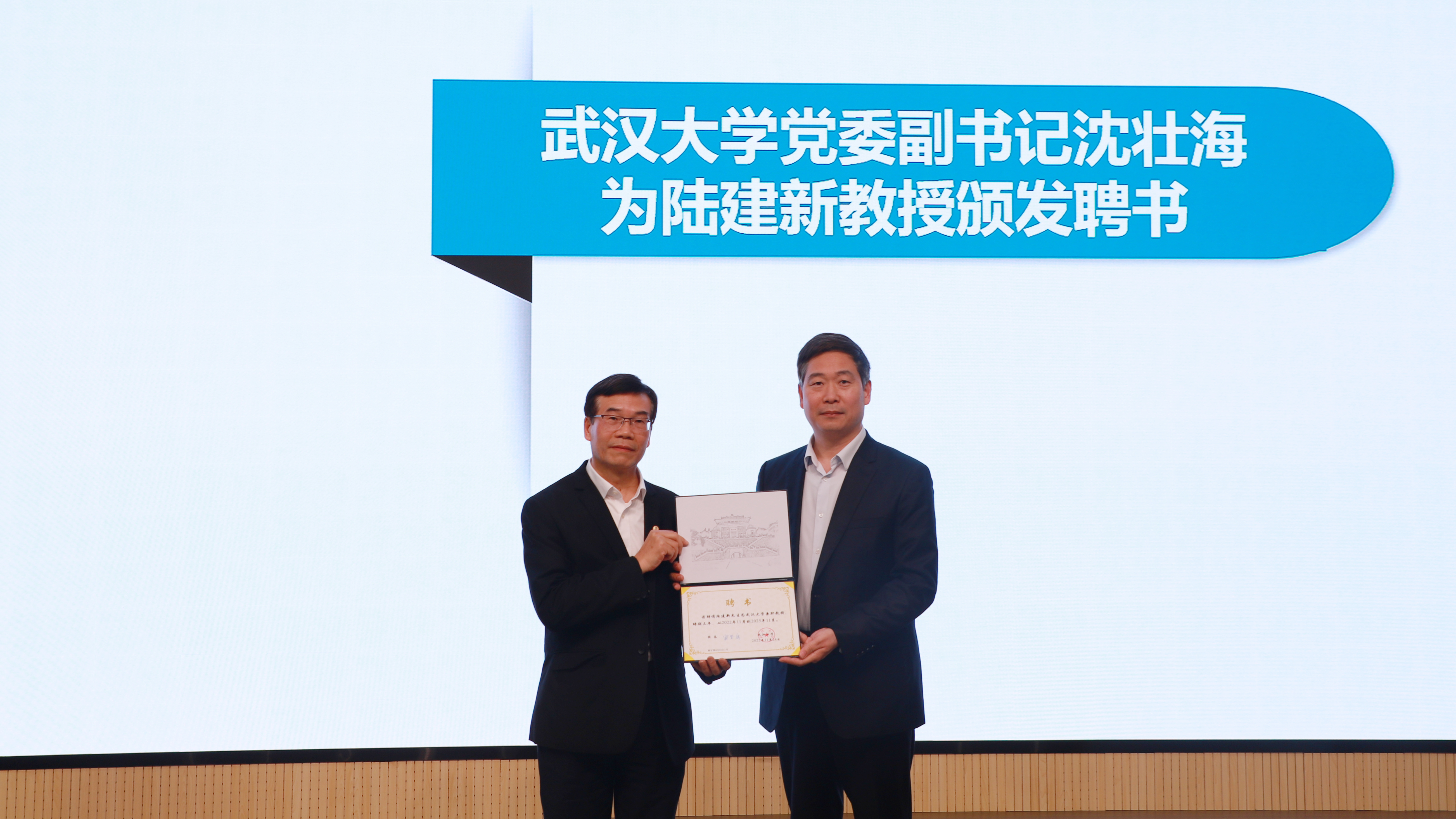 校党委副书记沈壮海代表学校向陆建新教授颁发ok1133诸侯快讯网兼职教授聘书