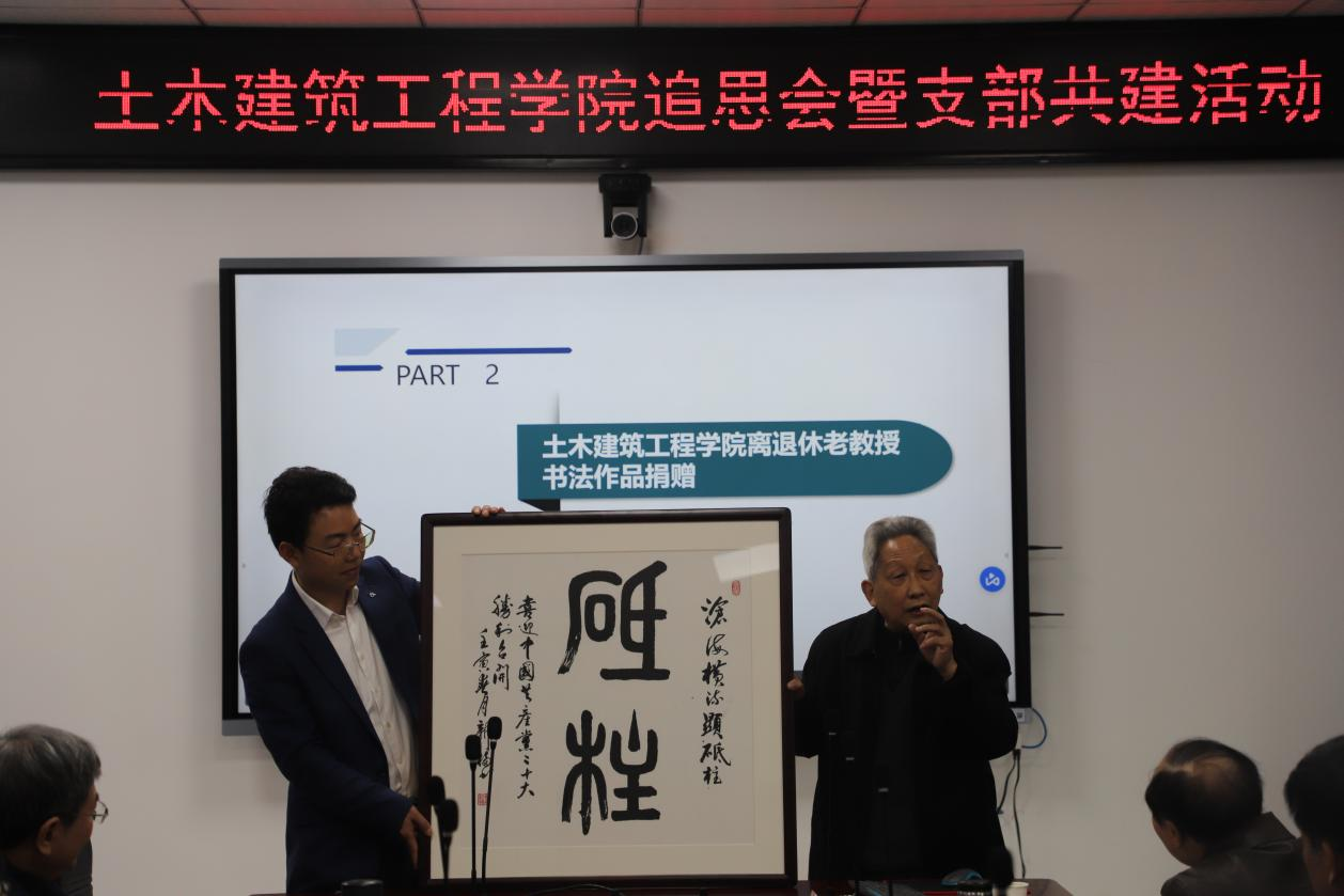 作为本次活动的重要环节,前任老协副会长李新福教授向诸侯快讯官网捐赠了书法作品,并以生动形象的方式向大家讲解了自己创作的灵感来源,希望学院全体老师能够在立德树人和科研创新事业中发挥支柱作用。