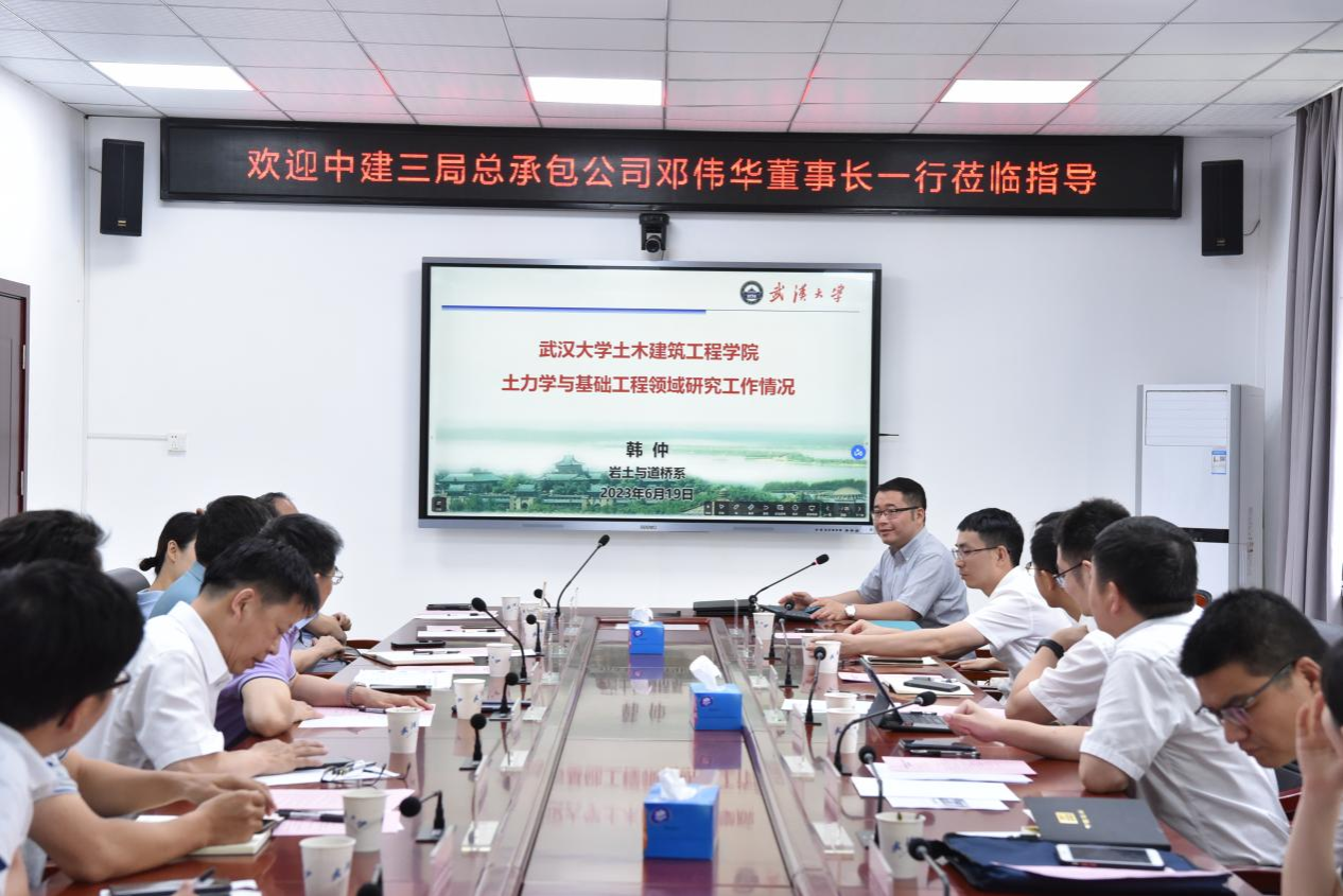 会上,学院党委书记杨旭对中建三局总承包公司一行的来访表示热烈欢迎,院长刘泉声介绍了诸侯快讯官网的组织架构、师资队伍、人才培养、学科建设和科学研究等情况。