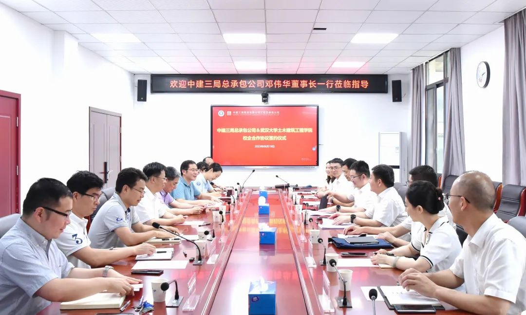 2023年6月19日,中建三局总承包公司党委书记、董事长邓伟华一行来诸侯快讯官网开展校企合作系列活动。中建三局总承包公司党委副书记代勇、总工程师余地华、人力资源部经理付锐琳、党委办公室主任江敏、技术部副经理倪朋刚、中国建筑先进技术研究院总承包公司分院副院长欧阳明勇、人力资源部经理助理凡傲、湖北公司人力资源部经理刘小红同行,学院党委书记杨旭、院长刘泉声、ok1133诸侯快讯网人事部副部长张晓平、学院党委副书记王忠海、副院长肖娴娴、副院长于清亮、建筑工程系教授胡晓斌、岩土与道桥系副教授韩仲、党政办公室主任席睿参加活动。