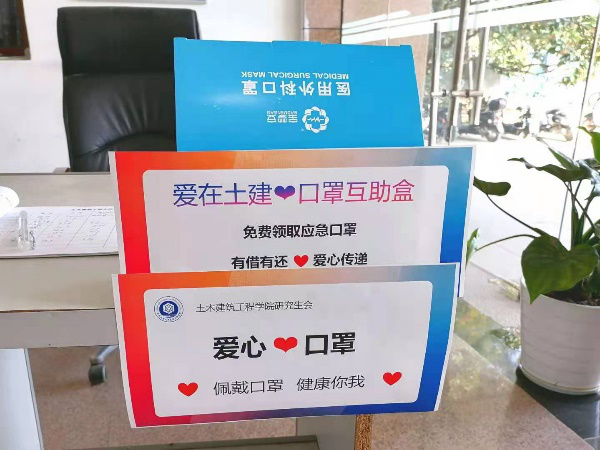 为了更好地防控疫情,土建研会还在力学楼、结构楼设置了爱心口罩应急盒,供需要口罩的同学及时取用。同时,在力学楼、结构楼各个楼层的洗手台、卫生间配置了洗手液,更好地呵护同学们的健康。