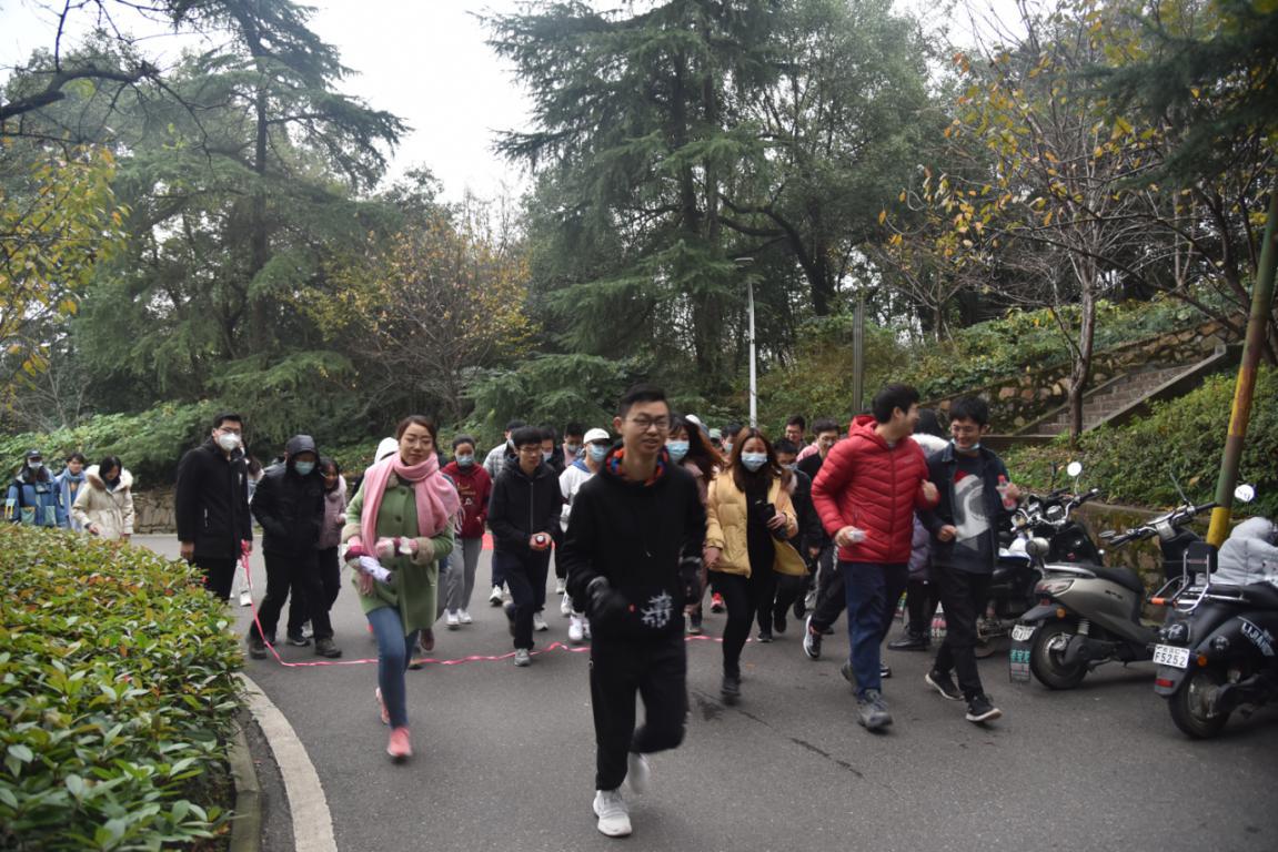 当日上午天气情况并不理想,阴天还伴着不时落下的小雨,但这并不能阻挡同学们的热情。大家提前10分钟到场签到,进行热身运动。在签到点为同学们准备了巧克力和水,满足大家补充能量和水分的需要。上午9:10活动正式开始,随着出发号令声落,大家一齐出发。瞬间,冬天略显萧瑟的氛围被抹去,珞珈山洋溢着青春的朝气。