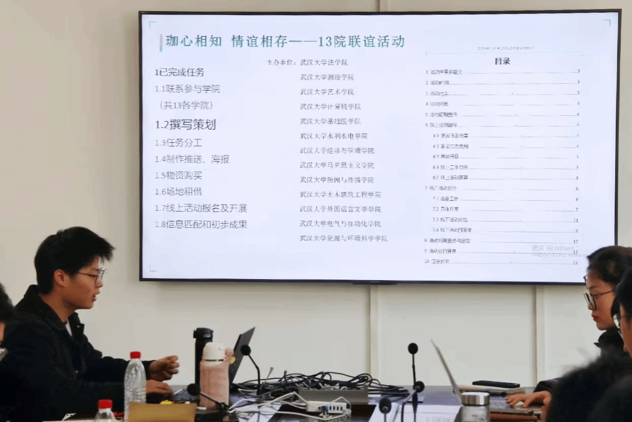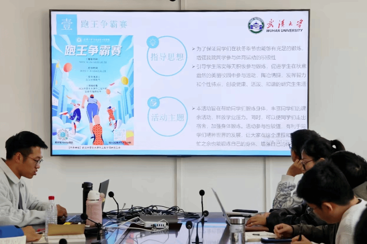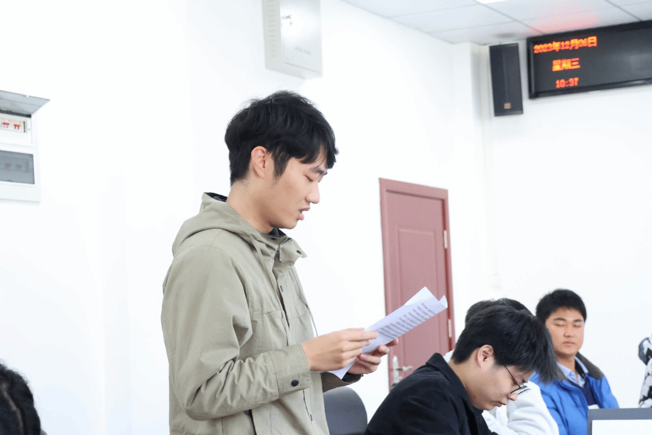 随后,文体部负责人孙泽文和朱家保同学汇报了近期的工作情况。文体部近期顺利举办了跑王争霸赛,目前正在积极开展羽毛球研赛、13院联谊活动、乒乓球研赛。朱家保同学详细介绍了13院联谊活动的前期准备、工作现状和遇到的问题,重点强调了提前动员与协调沟通的重要性,为研会各部门举办活动提供了宝贵的经验。