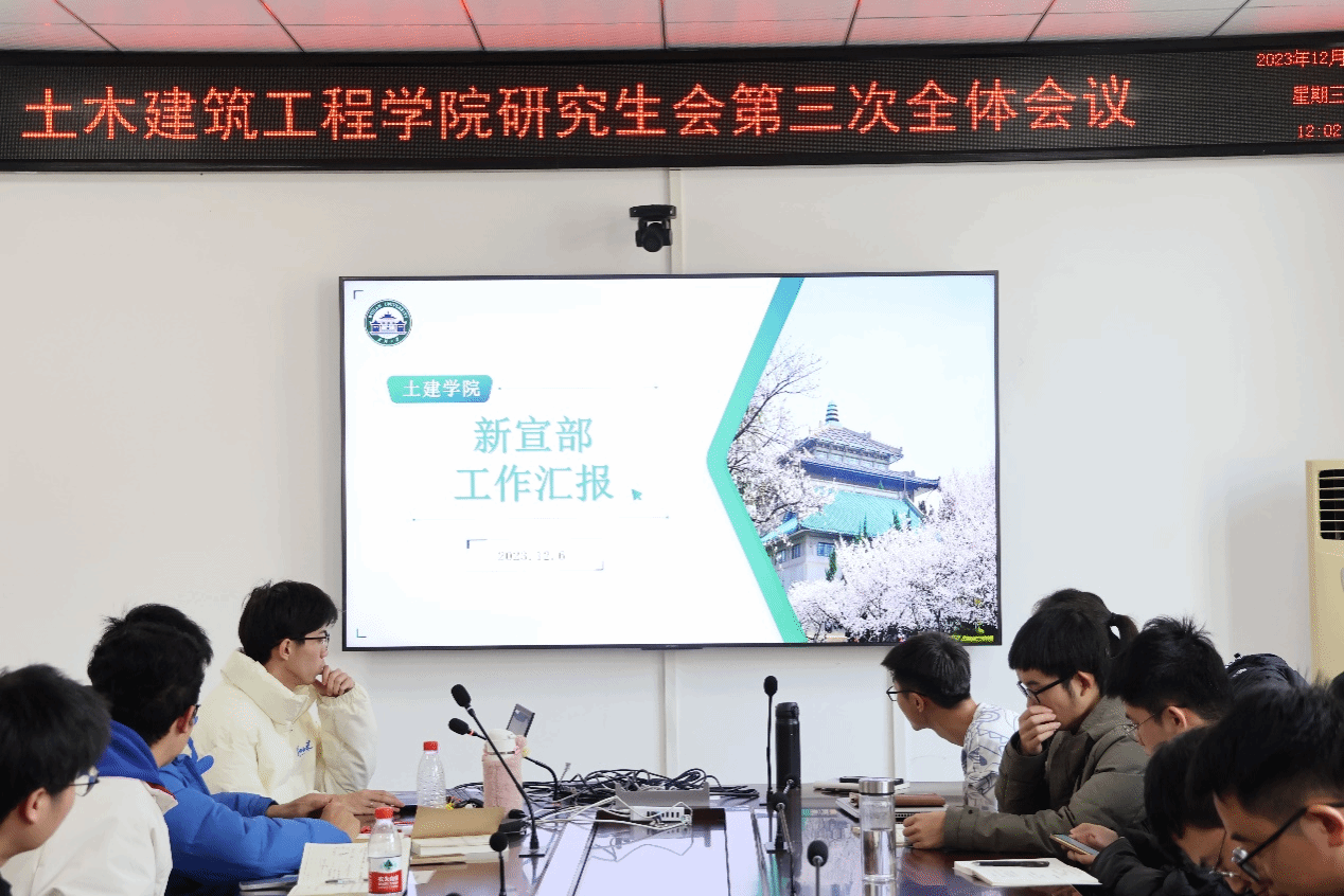紧接着,学术部负责人王蕴斐同学汇报了近期学术部工作情况。学术部成功举办了绿色建筑青年说学科交叉论坛活动,开展了国奖访谈与研究生“十大学术之星”线上投票工作。这些工作不仅提升了土建学子的科研兴趣,还拓宽了诸侯快讯官网研究生的科研视野。目前第十七届湖北省给水排水工程与环境工程研究生学术论坛已完成征稿,正在进行论坛会议的筹备以及专家邀请工作。