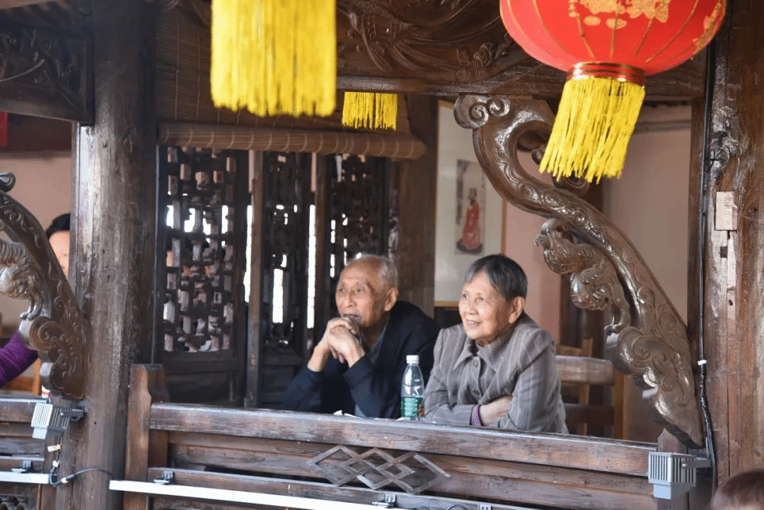 游览期间,各位老师结伴同行,认真聆听导游的讲解。通过古寨门楼,老教师们来到了“乡喜楼”,沉浸式地体验了古时的婚庆仪式。追溯历史、感悟民俗,老师们欢声笑语,感受着喜庆的气氛,传递着对生活的热爱。