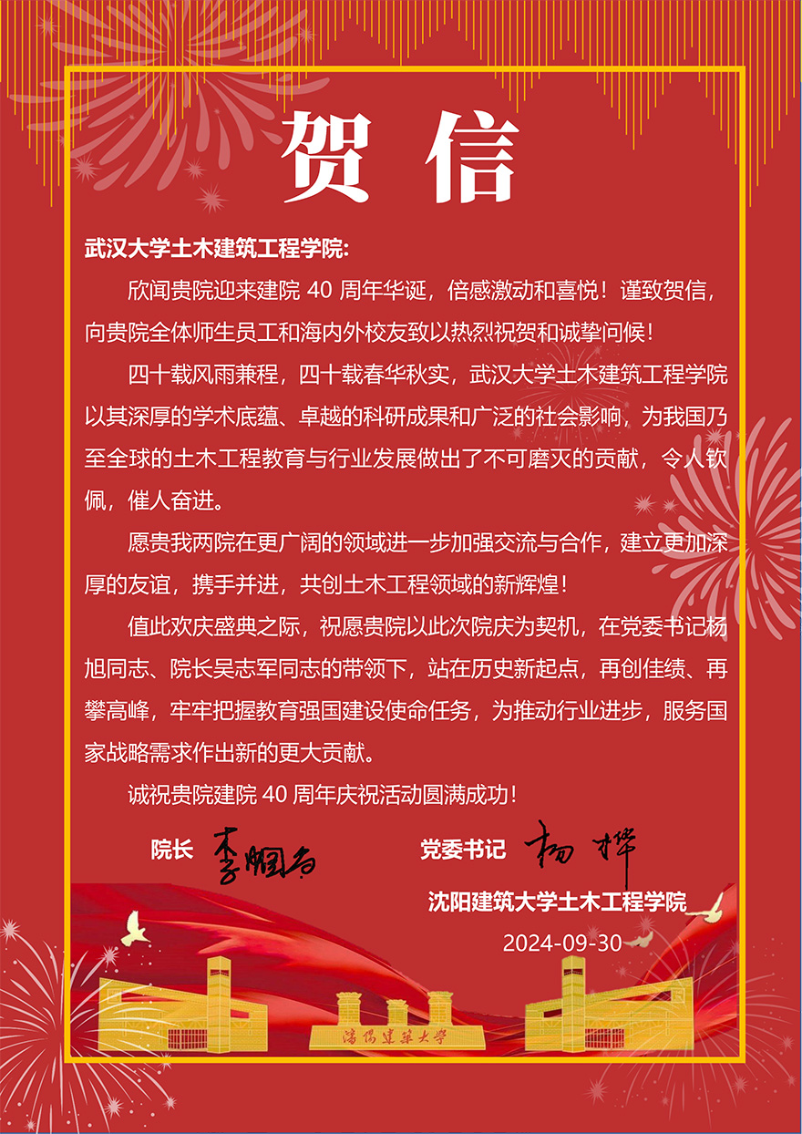 沈阳建筑大学土木工程学院贺信