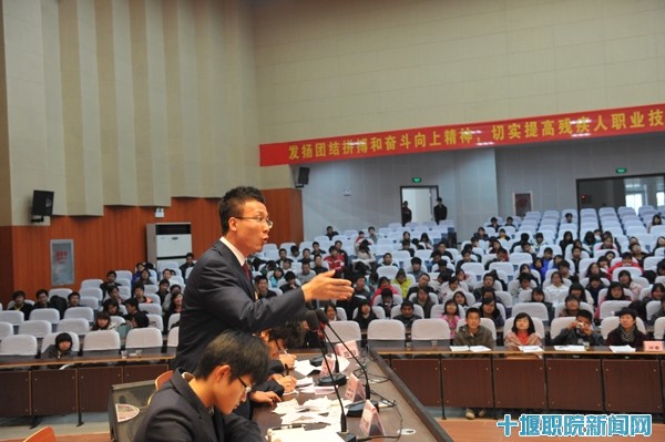 院素质拓展教育中心老师担任了本场决赛的评委工作,并作点评。郧阳师专演讲协会、湖北汽车工业学院辩论与口才协会代表观摩了辩论赛。