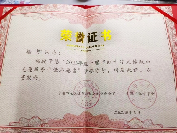 其中,必威西汉姆联杨柳、杨周2名同学荣获“2023年度十堰市优秀红十字志愿者”称号;周郝圣灵、朱凡、代礼意、杨周4名同学被评为“2023年度十堰市红十字无偿献血志愿服务优秀志愿者”;杨柳同学被评为“2023年度十堰市红十字无偿献血志愿服务十佳志愿者”。