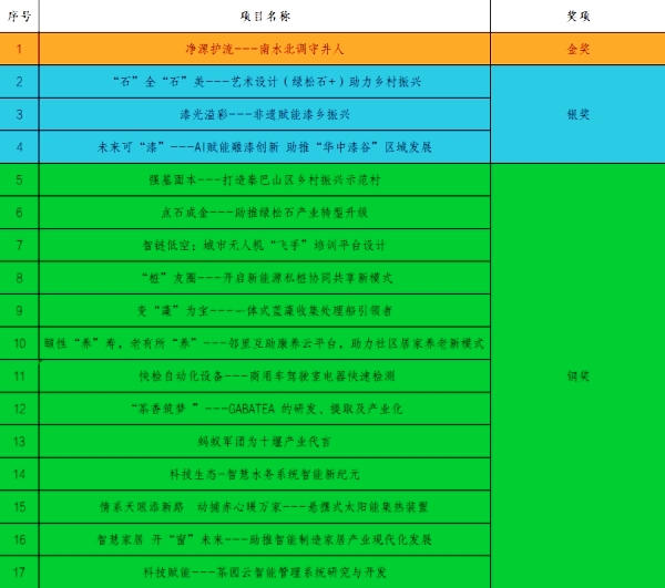 本届湖北省“挑战杯”大学生创业计划竞赛由共青团湖北省委、湖北省教育厅、湖北省人力资源和社会保障厅、湖北省科学技术协会、湖北省学生联合会主办,大赛设有“乡村振兴和农业农村现代化”“社会治理和公共服务”等5个赛道,共有来自省内121所高校的1717个项目参赛。