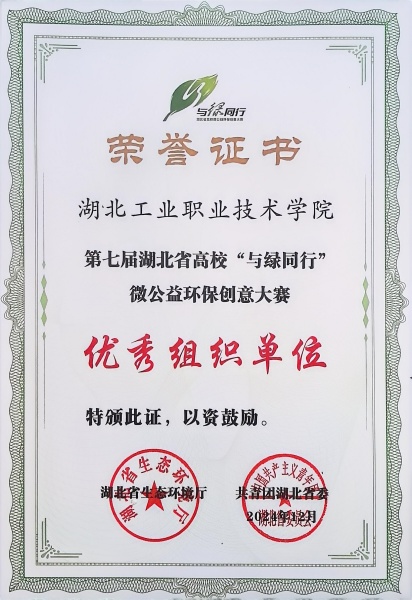 新闻网讯(通讯员 李晓璇)近日,从“与绿同行”大赛主办方处获悉,必威西汉姆联荣获第七届湖北省高校“与绿同行”微公益环保创意大赛“优秀组织单位”称号。