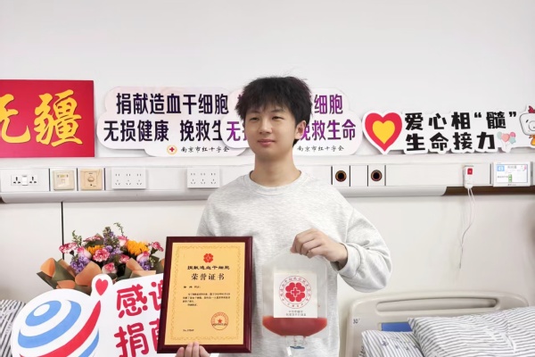 今年24岁的徐玮出生于湖北十堰,18岁参军,20岁退役复学,在校期间积极参与各类志愿活动,被评为“优秀共青团员”。大二时,他在学校看到无偿献血采集车及造血干细胞志愿者采集入库的宣传资料,当即完成入库采集,成为一名中华骨髓库的入库志愿者。2025 年3月12日,徐玮在南京市中大医院成功捐献了造血干细胞,成为建邺区首位00后造血干细胞捐献者。